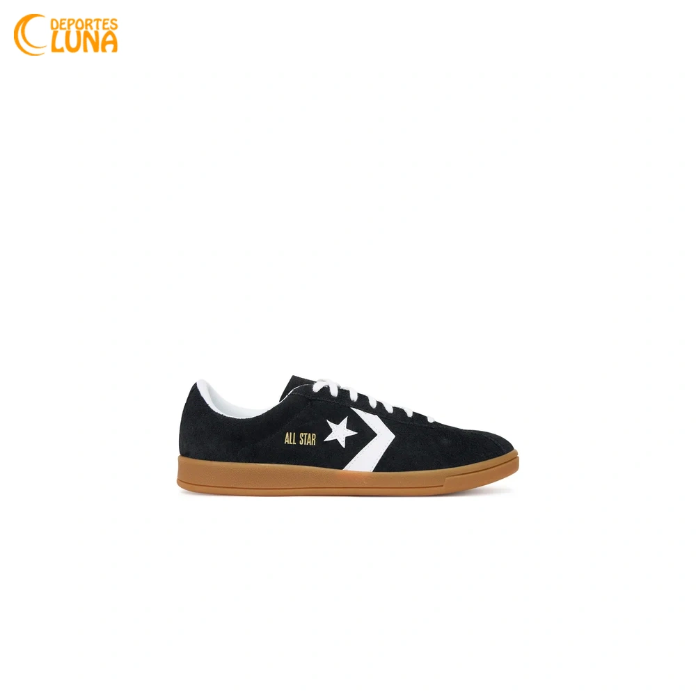 El modelo Converse A16534C mantiene las características que han hecho de Converse una marca de referencia en todo el mundo: líneas sencillas, lona de alta calidad, puntera de goma blanca y el icónico parche de la estrella. Este diseño en color negro ofrece un contraste elegante con los detalles blancos, lo que refuerza su carácter atemporal y su capacidad de combinar con cualquier estilo.